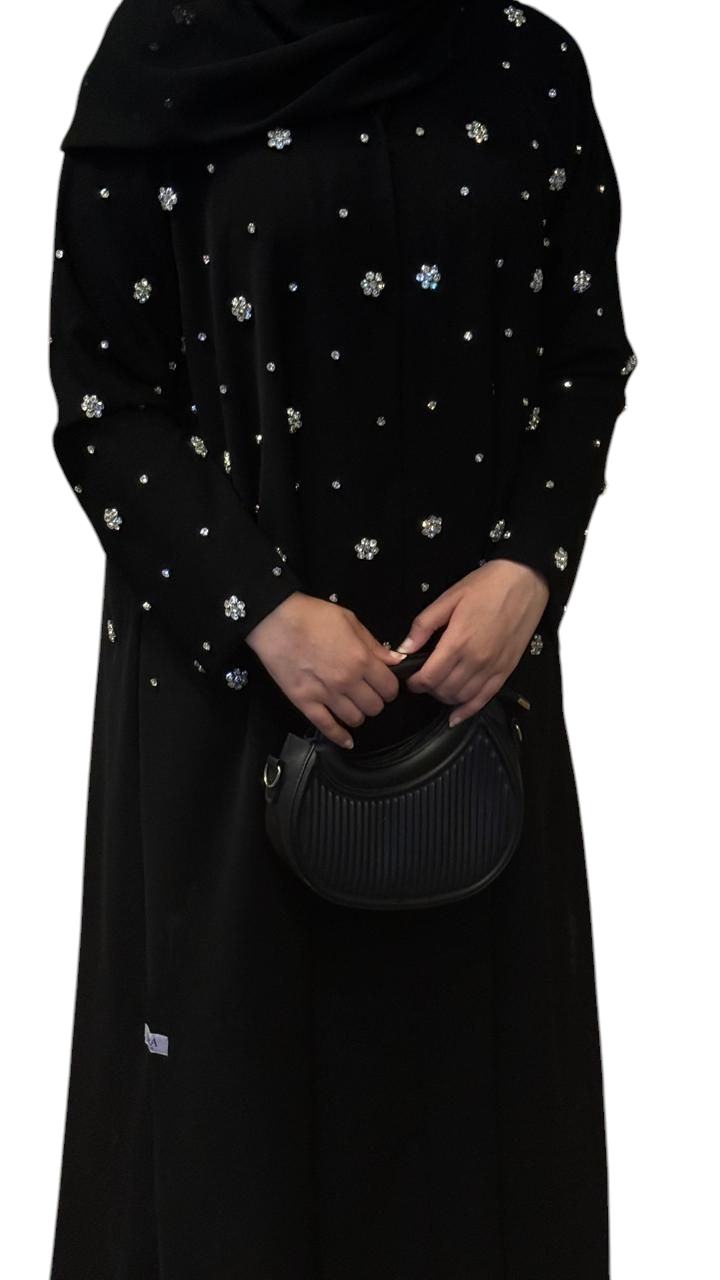 عبايه سوداء أنيقة بتطريز ناعم من الفصوص المتناثرة على كامل الجزء العلوي، تمنحك لمسة فاخرة وأنثوية في كل إطلالة. تصميم يجمع بين الرقي والبساطة، مثالي للمناسبات الرسمية والخروجات اليومية. مصنوعة من قماش عالي الجودة يضمن راحة وأناقة تدوم طوال اليوم.
